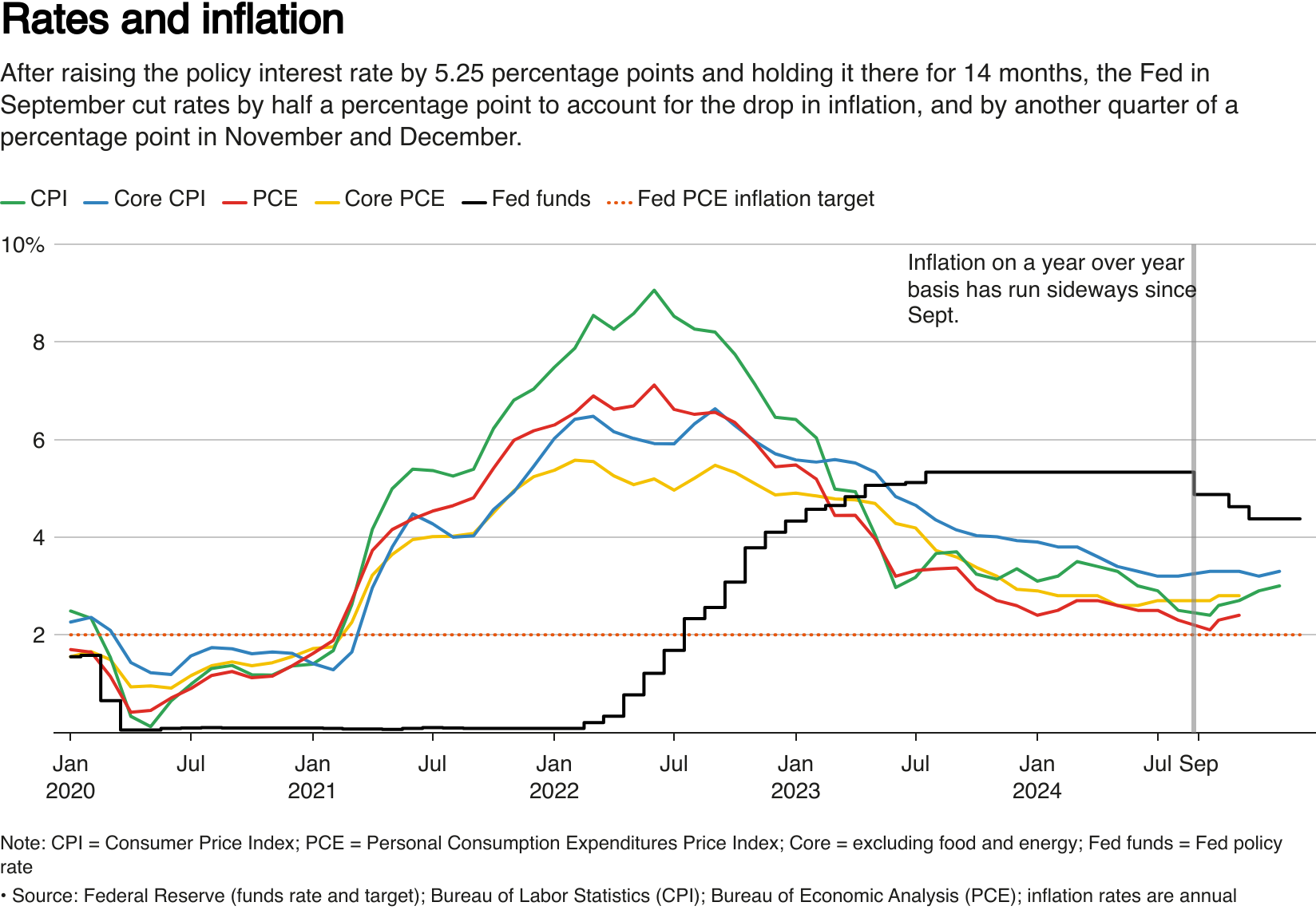 Administration officials argue their plans, which also include tax cuts, deregulation and crackdowns on immigration, will ultimately lower inflation, a view not widely shared by economists. A recent paper by Boston Fed researchers concluded that tariffs of 25% on Mexico and Canada and 10% on China would add 0.8 percentage point to inflation, a blow to the Fed’s outlook.