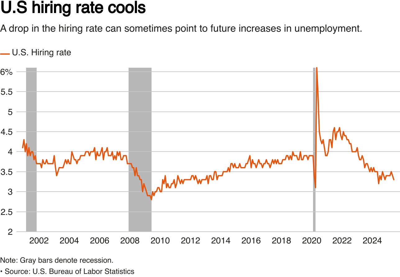 “Labor demand may be on the edge of a sharp decline,” Waller said, referring to internal staff estimates of recent job dynamics. The Fed “should not wait until the labor market deteriorates before we cut the policy rate.”