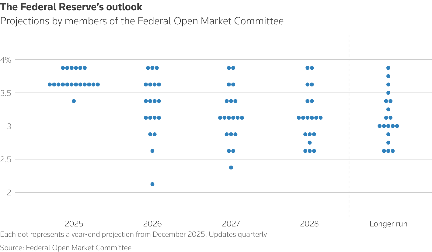 “First, they know less than usual about the current state of the economy because the shutdown delayed the release of economic statistics. Second, the Fed’s guidance doesn’t account for how its approach will change after Chair Powell’s term ends in May,” he said. White House economic adviser Kevin Hassett, seen as the front-runner to be the next Fed chair, told the WSJ CEO Council on Tuesday there is “plenty of room” to cut interest rates further though a rise in inflation could change that view.